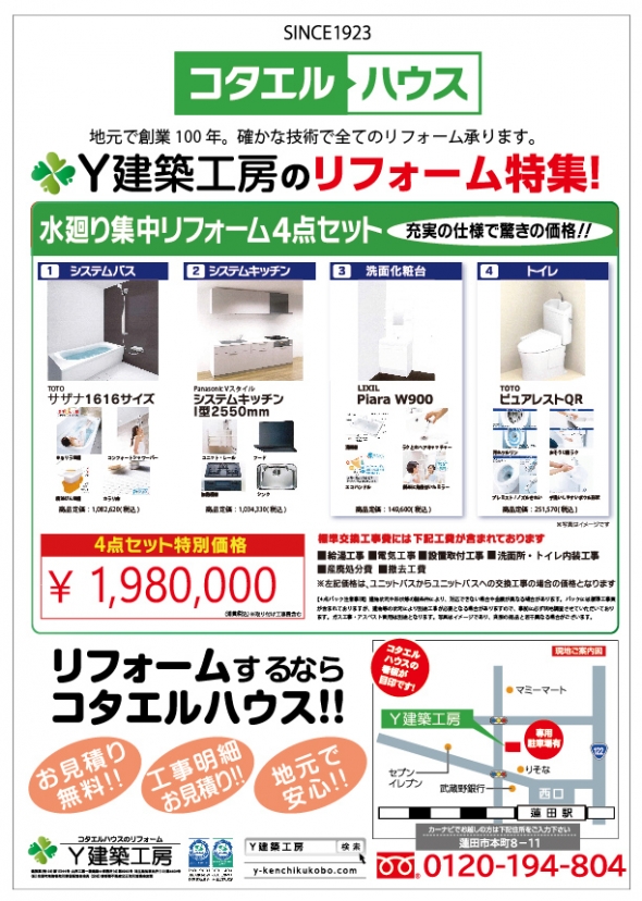 尚、リフォームに関するご相談・受付は、お問い合わせフォームから随時受け付けております。