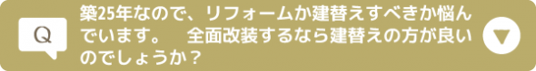 耐震性の強化を含めた大規模リフォームをお考えでしたら、建て替えをお勧めしております。