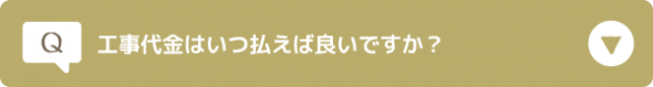通常はご契約時に着手金、工事着工時に中間金、工事完了後に残金の3回に分けてお支払いいたしますが、 お客様のご都合によってご相談に応じます。